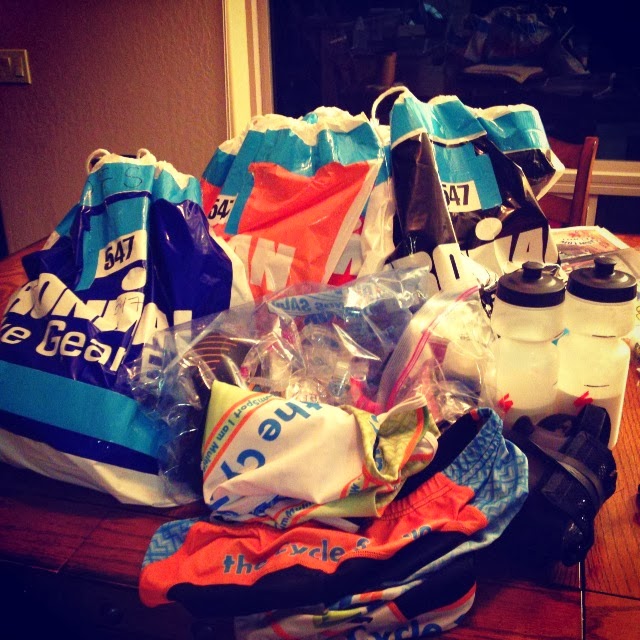 I got home and went for a light run. Felt good. Lungs feel a little tight, but overall not bad. I started the long task of organizing all my gear bags. I spent about 90 minutes organizing all my stuff into piles before I left Indy. Tonight it took about 90 minutes to get my gear bags decorated in teal duck tape (thanks Kim!) and organized. I also wrote out my nutrition on note cards for people to have on the course and for me to have. Labor intensive, but it helps me commit it to memory.