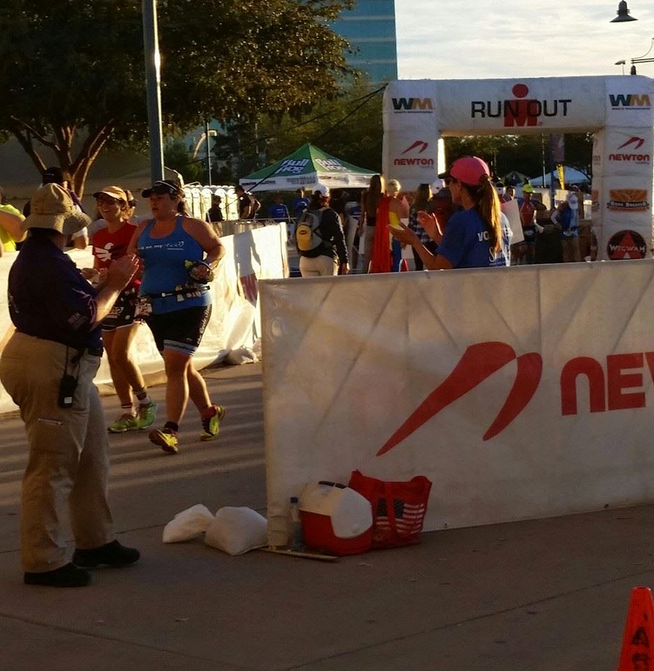 I came back under the bridge and saw a lot of familiar faces. I saw Ryan as I crossed Priest. I came across the infamous mile marker 19 where my chip was taken last year. As I made it around to mile 9 and 10 I felt like a toy winding down. Sorry to be disgusting but I was starting to feel toxic. I had to crap yet I couldn’t. It was making me feel awful. I was not moving well and I was having a hard time keeping my eyes open and my mouth closed. Sarg met me and he told me I needed to pick up the pace. I went down the hill into an aid station and got tunnel vision. I couldn’t focus my vision, I couldn’t really hear what people were saying. I was covered in salt, not just a dusting, but crystals had formed all over my skin. I had the cold sweats, although I wasn’t sweating. My hands were numb and I couldn’t feel my water bottle in my hand. I got back to the aid station and asked for the medic. I stumbled on the ground and they said my hands were freezing. The wrapped them in a tshirt and trash bag as that was all they had. I started nodding off and they made me keep my head up and my eyes open. When the medic got there I had sipped a bit of water and could at least talk a little bit again. I told the medic that I hadn’t peed since about mile 70 on the bike. He asked if I was taking in water and I told him the best I could. He said it was my decision but it wasn’t sounding good. At this point I had been sitting waiting for about 15 minutes and the 9 pm cutoff was getting closer. It took 3 people to help me up, so I decided it wasn’t worth the risk so I got in the golf cart. Jessica came riding by on her bike and I pointed at her and said I knew her, but I couldn’t process who she was. She started hugging me and I immediately started crying. I felt this rush of embarrassment that I had let everyone down. Everyone that traveled to cheer me on. Everyone that was supporting me from every facet of my life. All Ironman crew that were so excited to greet me at the finish. I was so sad myself, I knew I had put the work in, the day just didn’t come together like I had hoped.