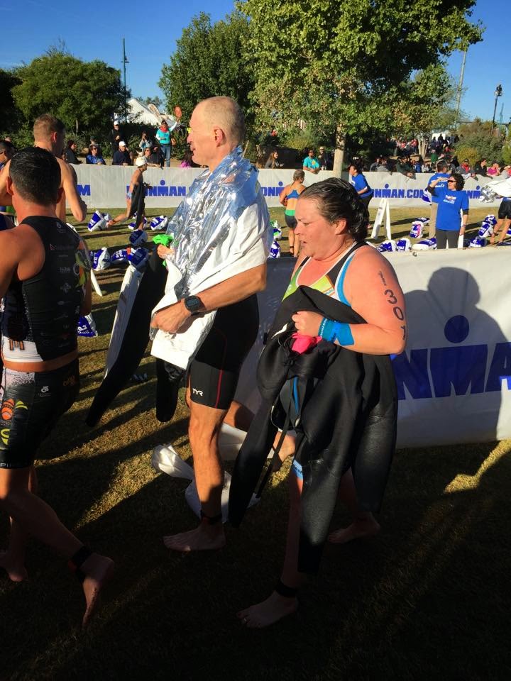 I went to the medic tent and I swear it takes a fucking act of congress to get an IV in there. I had to sip chicken broth for an hour before I could finally pee and leave. The poor guy next to me kept asking for an IV and they made him lay on the ground with his legs up on a chair, wrapped in a moving blanket before they would consider it. As my friends and family came in to check on me, I started crying all over again. As I looked around at all the finisher hats and medals around me I cried. As I heard rally of the finish line just 100 feet away from me I cried. FUCK. I was here again. I thought if I could finish it last year, I could surely finish this year, and faster. I’ve heard over and over that’s Ironman, just getting to the start line healthy is always a feat in itself.