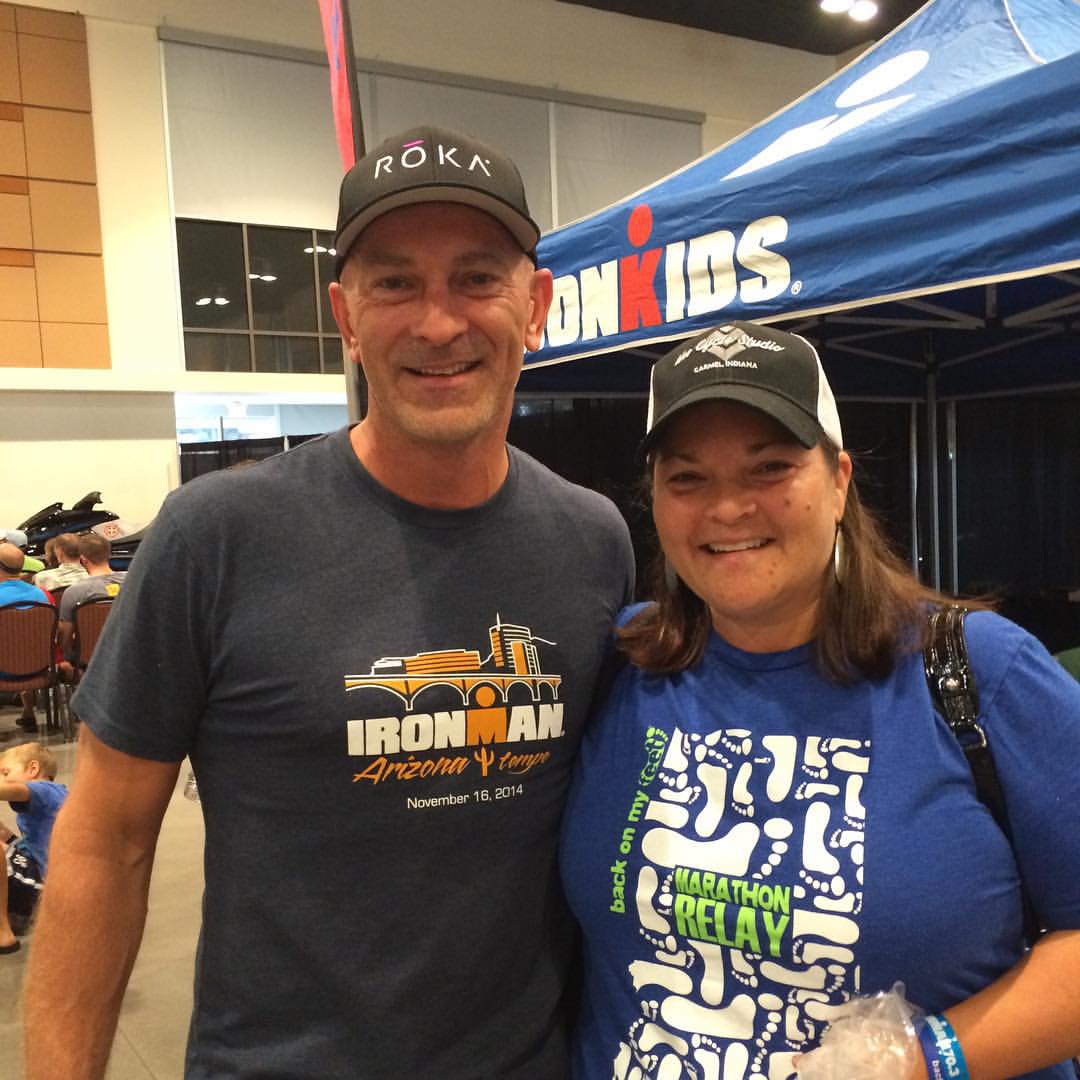 Getting to the expo got me so excited! There’s an electricity in the air that just gets you jazzed up. I was actually excited for the race and ready to go all out. During my walk into the expo I met a girl doing her first 70.3 in my age group, I thought back to my first race, it’s such a blur yet sometimes seems like yesterday, so I was excited for her. I randomly started talking to a guy next to me in the Athlete’s meeting. I then noticed he had an IMAZ14 shirt on, so we started talking about the hell of the wind on the bike. We continued to talk and realized that he was in the group that came out to cheer me on at the finish in 2013. He introduced me to his wife as “this is the girl I told you about” and we took a picture.