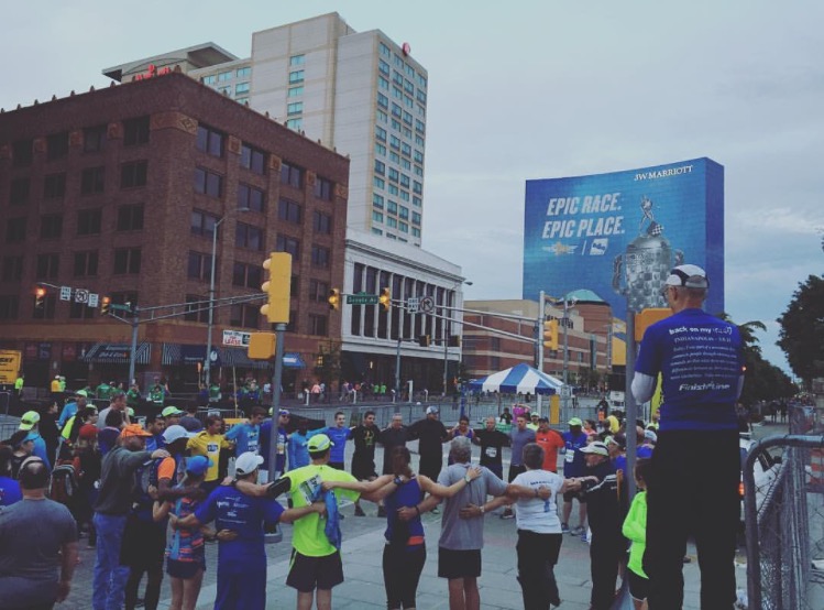 It’s tradition that we circle up before the race. In that picture of the circle there are so many emotions. There’s nerves. It was a first half marathon for many. Some were going after a PR. Others were returning after injury or fighting personal obstacles. There’s happiness, to be in a circle of people that truly support each other as runners and human beings all getting through this race called life. There’s pride. Pride in the team, pride in one’s self and pride in the progress of each of our journeys.